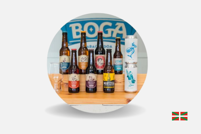 9 estilos de cerveza (Argia, Tosta, Lorea, Beltza, Martzela, Libre, Urtopiak #03, Urtopiak #04 y Neguko) + vaso especial de cata, abridor imán y posavasos.